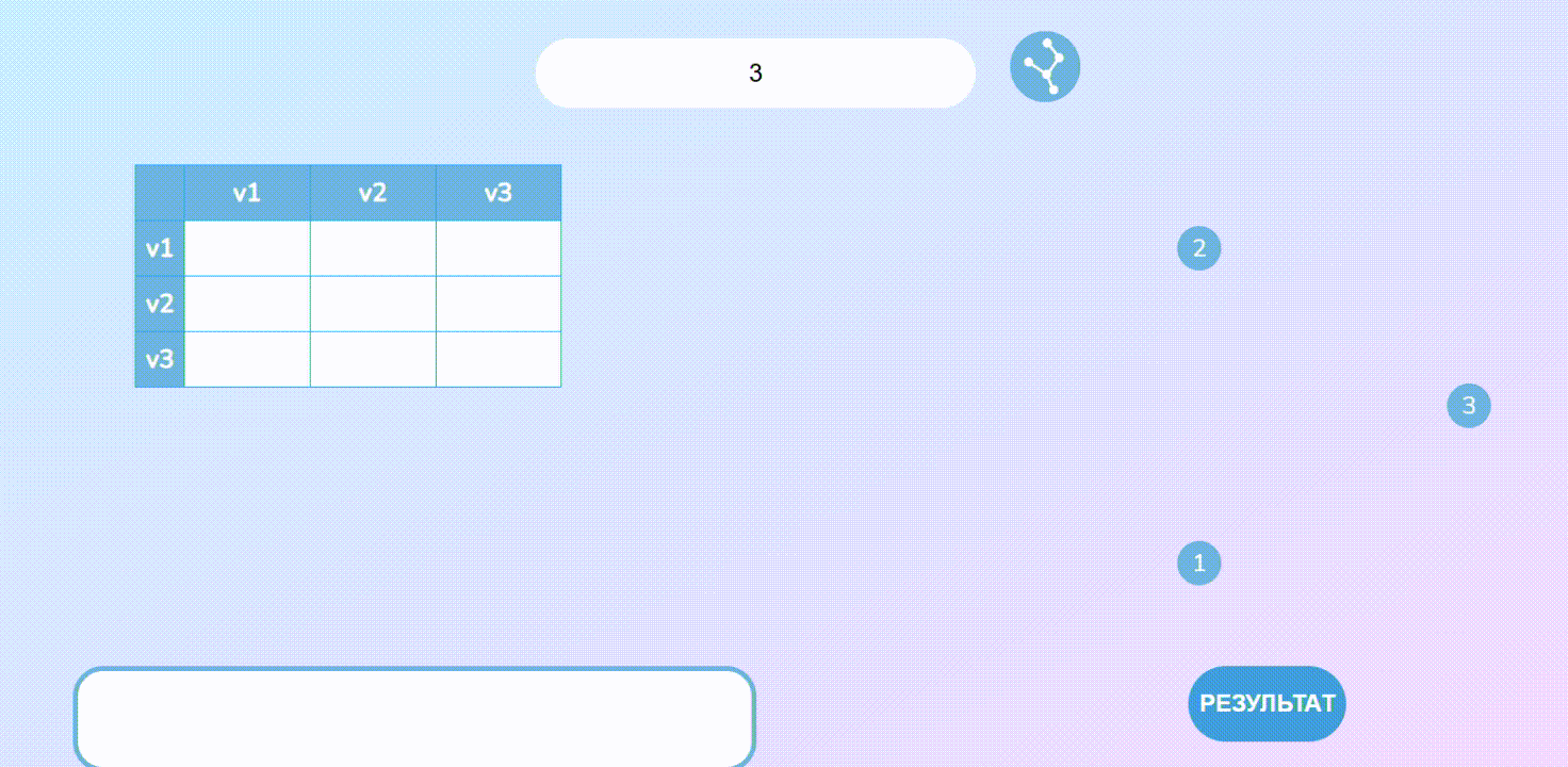 Задайте граф матрицей смежности, указав веса ребер, выберите вершину. Система покажет кратчайшее расстояние от заданной до остальных вершин графа.